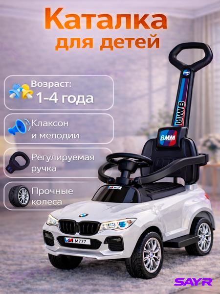 Детская каталка — это удобная и безопасная машинка-толокар, предназначенная для детей в возрасте от 1 до 4 лет. Она помогает малышу развивать координацию движений, моторику и чувство равновесия, а также делает прогулки и игры более интересными и активными. Каталка оснащена удобным сиденьем со спинкой, которое обеспечивает комфортную посадку ребёнка. Высокая и прочная спинка дополнительно поддерживает спину малыша, снижая нагрузку во время катания. Регулируемая родительская ручка позволяет взрослым легко управлять движением каталки и контролировать ребёнка во время прогулки. Встроенный клаксон и музыкальные мелодии делают игру более увлекательной, привлекая внимание ребёнка и вызывая положительные эмоции. Прочные колёса обеспечивают устойчивость и плавный ход по ровным поверхностям, а также подходят для использования как в помещении, так и на улице. Каталка изготовлена из качественного и безопасного пластика, не содержащего вредных веществ. Конструкция устойчивая и надёжная, что делает использование безопасным для ребёнка. Яркий и современный дизайн в виде автомобиля понравится как детям, так и родителям. Детская каталка станет отличным подарком для малыша, подойдёт для ежедневных игр и поможет ребёнку активно проводить время, развиваясь через движение. Преимущества: подходит для детей от 1 до 4 лет удобное сиденье со спинкой клаксон и музыкальные мелодии прочные и устойчивые колёса безопасные материалы