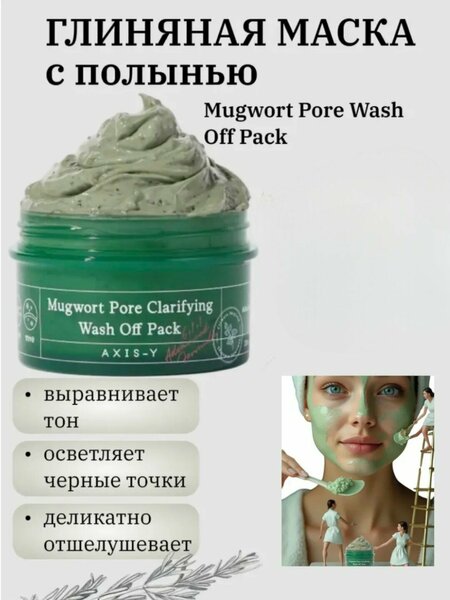 AXIS-Y Mugwort Pore Clarifying Wash Off Pack — это смываемая маска на основе экстракта полыни (mugwort / artemisia vulgaris), которая составляет до 50% формулы. Полынь известна своими мощными успокаивающими, антибактериальными и противовоспалительными свойствами. Маска эффективно вытягивает загрязнения из пор, абсорбирует лишний себум, уменьшает покраснения и делает кожу заметно чище, матовой и свежей уже после первого применения. После смывания кожа становится гладкой, поры визуально сужаются, а жирный блеск уходит на несколько часов.