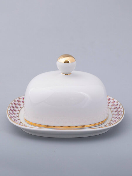 Масленка Прямоугольная Сетка-Блюз 2 от Императорского фарфорового завода - это современное и стильное решение для хранения масла. «Сетка-блюз» - это современная интерпретация росписи «Кобальтовая сетка», ставшей признанной классикой Императорского фарфорового завода. Розовый цвет отсылает к прообразу этого легендарного мотива – «Собственному» сервизу Императрицы Елизаветы Петровны, выпущенного в 1750-х годах, а ныне хранящегося в коллекции Государственного Эрмитажа. Автор формы - Лепорская А. А. Размеры масленки с крышкой: