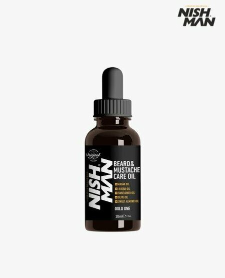 Масло для бороды NISHMAN BEARD OIL смягчает и разглаживает бороду и усы. Парфюмированный аромат GOLD ONE. Эффективно увлажняет, за счет уникального состава из 5 масел: аргановое масло, примесь масла жожоба, подсолнечное масло, оливковое масло, масло сладкого миндаля. Насыщает полезными компонентами, придает мягкость и блеск. Быстро впитывается и не оставляет излишнего блеска. Очень удобный в использовании флакон в виде спрея. В составе масла нет парабенов. Питая волосяные фолликулы, масло ускоряет рост волос при регулярном использовании. Масло защищает волосы от негативного воздействия окружающей среды. Особенно это важно в жару и холод, так как борода и усы всегда не защищены. На бороду не наденешь шапку, а мороз или жара ей на пользу не идет. С маслом борода выглядит опрятно и приятно пахнет.