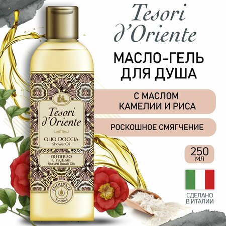 Масло для душа TESORI D’ORIENTE - Это новое поколение роскошных масел для душа. Эксклюзивная формула при контакте с водой превращается в насыщенную шелковистую пену, которая очищает и питает кожу, наполняя пространство ванной комнаты изысканными ароматами восточных грез. Масло OLI DI RISO e TSUBAKI - это смягчение вашей кожи. Необычайно успокаивающая формула, обогащенная маслами риса и камелии, гармонично и нежно очищает и питает кожу, делая её мягкой и гладкой. Tesori d’Oriente содержит лучшие масла со всего мира. Холодное прессование позволяет сохранить их свойства и обеспечить максимально бережный и питательный уход за кожей. масло для душа TESORI D’ORIENTE - Это