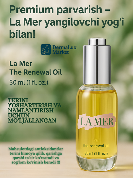 {"widgets":{"@light/ProductM2bEdoOnlyBadge":{"/content/page/fancyPage/defaultPage/m2bEdoOnlyBadge":{"wrapperProps":{"margins":{"top":"2"}},"isM2bEdoOnlyEnable":false}}},"meta":{"/content/page/fancyPage/defaultPage/m2bEdoOnlyBadge":{"name":"@light/ProductM2bEdoOnlyBadge"}},"collections":{"views":{"defaultOffer":"vi_92510280387734619_bi_4948624081065902767"},"viewItem":{"vi_92510280387734619_bi_4948624081065902767":{"id":"vi_92510280387734619_bi_4948624081065902767","composeId":"92510280387734619","buyOptionId":"bi_4948624081065902767"}},"buyOption":{"bi_4948624081065902767":{"id":"bi_4948624081065902767","title":"Масло для лица и тела La Mer The Renewal, питательное, антиоксидантное, Увлажняющее, восстанавливающее 30 мл","offerId":"xwqpcSDTW_2NB0X4oLmwmA","slug":"maslo-la-mer-the-renewal","trackingLinks":{"cpa":"/BaKsVeDoqNJg-fF5ukMaEoUESeLE","promotionUrl":"/HY0HM_i4qCcUNpBKZzW-_t7SMqbd"},"skuId":"4747027505","productId":"1512130224","categoryId":"63980574","navnodeId":"63989414","departmentId":"54438","showUid":"17716641526667451161706001","counterStep":1,"minimum":1,"maximum":1,"price":{"value":599900,"currency":"UZS"},"vendorId":"16336741","feeShow":"OTNDnItfwRMlLJby2gHopQ4F_t6zRMMstBuK7THNCYzBKZRfQczrPbDVCttOcPzaKPI6mPTOGq88GZaW2EFZ1yAzwwfRThnHzGmjSEo2vMrKpIajIk-swAkD7BdI2iJsGsetRA4DA-0Ac-IUatN5TNpg82RCu2t02lfEOeh2djvwZuUEZwb90wQ9Xwugy664vcMbpcu-SE5guKUXInhANgzPOjtVoxe58Fkvvz-vFz-23oF9Wvvb7SIfHz-Jtm0CrYIRaIQy-1W8cIyOfuH9EFU7eYeHXoi9jXDiJJyArtM,","feedId":"58340832","feedOfferId":"58340832.181","shopId":"431782","supplierId":"216482392","businessId":"216482393","supplierName":"DermaLux Market","businessName":"DermaLux Market","hasAnySize":false,"hasAnyDelivery":true,"benefitTypeCode":"waremd5","basePrice":{"value":799900,"currency":"UZS"},"promos":[{"key":"xD1-78LDt8ve5lk-5jj0FQ","type":"empty-promo","shopPromoId":"cf_135726","anaplanId":"cf_135726","landingUrl":"https://market.yandex.ru/special/empty-promo-landing?shopPromoId=cf_135726"}],"flags":["isVisual","isFby","isOnDemand","isPartialCheckoutAvailable"],"analytics":{"warehouseId":"311","paymentType":"ANY","paymentMethodTypes":["BY_CARD_ONLINE","BY_CARD_TO_COURIER","IN_CASH"],"deliveryOptions":[{"deliveryType":"delivery","fromDate":1771750552,"toDate":1771750552,"priceInfo":{"value":0,"currency":"UZS"}},{"deliveryType":"pickup","fromDate":1771750552,"toDate":1771750552,"priceInfo":{"value":0,"currency":"UZS"}},{"deliveryType":"pickup","fromDate":1771750552,"toDate":1771750552,"priceInfo":{"value":0,"currency":"UZS"}},{"deliveryType":"delivery","fromDate":1771750552,"toDate":1771750552,"priceInfo":{"value":0,"currency":"UZS"}}],"shopSku":"181","placementType":"3P","ownMarketPlace":true,"shopSlug":"yandex-market","yandexBnplInfo":{"enabled":true},"promos":[{"key":"xD1-78LDt8ve5lk-5jj0FQ","type":"empty-promo","shopPromoId":"cf_135726","landingUrl":"https://market.yandex.ru/special/empty-promo-landing?shopPromoId=cf_135726","isPersonal":false,"description":"Новые_акции_для_лендингов_полок_УЗБ_Beauty_1201"}],"hypeBadge":{"hasBadgeRare":false}},"deliveryType":"DELIVERY","imageMeta":{"namespace":"mpic","groupId":14688430,"key":"2a0000019a6d95a9dda49a00aa3bbf2a503f"}}},"market2Business":{"current":{"id":"current","isM2b":false}}}}