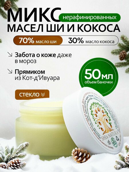 Дуэт мечты: Ши + Кокос для сияния вашей кожи! Представьте себе идеальную пару: нежное, питательное масло ши встречается с лёгким, увлажняющим маслом кокоса. Результат — наш роскошный микс, который станет вашим секретным оружием красоты! Масло Ши — мудрый целитель. Это плотное, насыщенное масло, известное своей способностью «лечить» самую сухую и обезвоженную кожу. Оно богато витаминами A, E и F, смягчает, восстанавливает защитный барьер и борется с воспалениями. Оно — это надежное объятие для вашей кожи. Масло Кокоса — энергичный увлажнитель. Легкое, быстровпитывающееся, оно проникает в самые глубокие слои кожи, не оставляя жирной пленки. Его главная задача — интенсивное увлажнение и сохранение влаги. А его стойкий, сладковатый аромат поднимает настроение и превращает уход в спа-процедуру. Вместе они создают синергию: Ши работает на «ремонте» и питании, а Кокос — на насыщении влагой и создании невидимого щита. Эта комбинация особенно хороша для: Зимнего ухода: надежно защищает от обветривания и обморожения. Летнего восстановления: успокаивает кожу после солнца. Ежедневной заботы: подходит для всей семьи, от сухих локтей до нежных губ. Попробуйте и убедитесь, что природа знает секрет идеальной кожи.