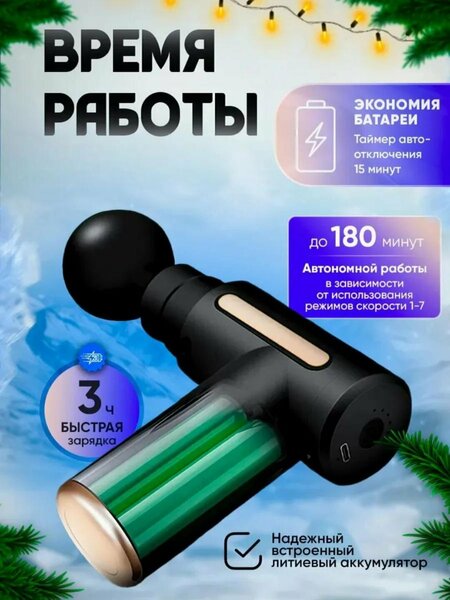 Предлагаем вашему вниманию массажный пистолет Massage Gun. Применение данного устройства способствует устранению болей, он эффективен для лечения и восстановления естественной работы мышц, уменьшения проявлений. Массажер Massage Gun оснащен четырьмя различными формами массажных головок с помощью которых можно сократить время восстановления мышц, стимулировать кровоток, снизить боли, в общем расслабить свое тело с головы до ног. Массажер выполнен в эргономичной форме в виде пистолета, он комфортно сидит в руке, им удобно пользоваться. Оптимальная длительность сеанса - 15 минут, работает от встроенного аккумулятора. Massage gun подойдет и женщинам, и мужчинам, он поможет привести мышцы в тонус и снять усталость после интенсивной тренировки или тяжелого рабочего дня. Противопоказания: не ловите насадку во время работы не используйте массажер длительное время на одном участке не рекомендуется делать массаж маленьким детям, беременным и людям с кардиостимулятором, также при переломе или растяжения Кратко о товаре: Тип: массажер мышечный Применение: фитнес и оздоровительный массаж Амплитуда колебаний: 12 мм/0,47 дюйма Количество скоростей: 6 (2100, 2400, 2700, 3000, 3300, 3600 об./мин) Аккумулятор: встроенная литиевая батарея 24 В 2400 мА/ч Время работы: до 3 ч Время зарядки: 2 ч.