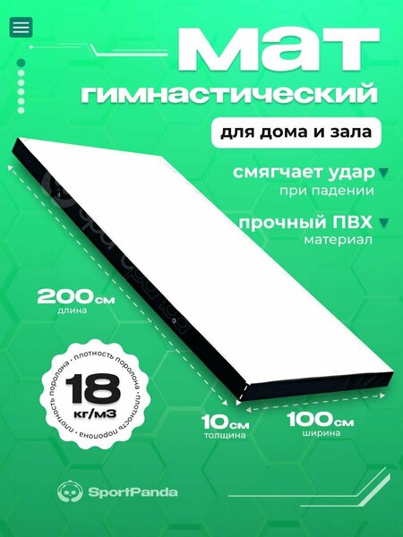 Ищете качественный мат для занятий спортом и фитнесом? Тогда вам понравится наш мягкий щит от бренда Sportpanda! Этот спортивный инвентарь станет незаменимым для вашего дома или спортивного зала. Почему стоит выбрать именно наш мягкий щит? * Безопасность. Изделие выполнено из качественных материалов — благодаря нескользящей поверхности тента ПВХ, коврик обеспечивает надежное сцепление с полом. Это предотвращает травмы и падения во время занятий. * Комфорт. Толстый слой поролона делает мягкий щит и удобным для выполнения упражнений. Вы можете быть уверены в том, что ваш комфорт находится на первом месте. * Универсальность. Мат подходит для различных видов спорта и фитнеса, включая йогу, гимнастику и многое другое. Он также может использоваться как дополнительный элемент для шведской стенки. * Прочность и долговечность. Материалы, из которых он изготовлен, обладают высокой прочностью и устойчивостью к износу. Это гарантирует его долговечность и сохранение первоначальных свойств на протяжении долгого времени. * Легкость в уходе. За инвентарем легко ухаживать — достаточно просто протереть его влажной тканью. Это позволяет поддерживать его в чистоте и сохранять внешний вид. Изделие имеет оптимальные размеры: 1х2х0,1 метра, что позволяет использовать его для различных целей. Он идеально подойдет как для взрослых, так и для детей, занимающихся спортом или фитнесом. Не упустите возможность приобрести качественный гимнастический мат по выгодной цене!