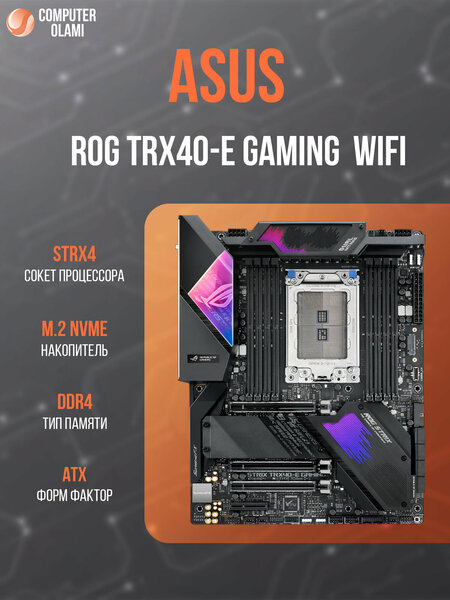 Тип: материнская плата Производитель процессора: AMD Сокет: TRX40 (для HEDT-платформы Threadripper) Чипсет: AMD TRX40 Форм-фактор: Extended ATX (E-ATX) Тип памяти: DDR4 Количество слотов оперативной памяти:8 × DIMM Максимальный объём памяти: до 256 ГБ Максимальная частота памяти: до 4400+ МГц (OC, зависит от модулей и CPU) Слоты PCI-E подробно: 4 × PCIe 4.0 x16 (для многокарточных конфигураций) Накопители: 3 × M.2 NVMe 8 × SATA 6 Gb/s Видео выходы: HDMI Разъёмы на задней панели: USB 3.2 Gen2×2 USB 3.2 Gen1 USB 2.0 LAN 2.5Gb Аудио разъёмы Разъёмы антенн Wi-Fi Беспроводные интерфейсы: Wi-Fi 6 Bluetooth
