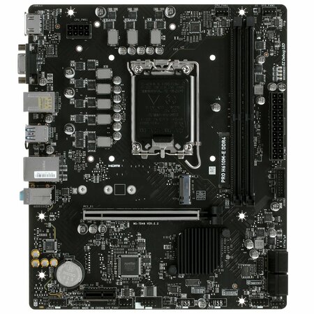Материнская плата MSI Pro H610M-E - это высококачественное решение для тех, кто ищет надежную и производительную систему. MSI Pro H610M-E оснащена чипсетом Intel H610, который обеспечивает стабильную работу и высокую производительность. Это позволяет пользователям наслаждаться быстрой и плавной работой системы. Материнская плата поддерживает DDR4 память с максимальной частотой 3200 МГц. Это обеспечивает быструю и эффективную работу системы, позволяя пользователям запускать ресурсоемкие приложения и игры без задержек. На плате предусмотрено два слота для установки оперативной памяти, что позволяет увеличить объем памяти и улучшить производительность системы. Материнская плата MSI Pro H610M-E оснащена слотами для накопителей M.2 и SATA, что позволяет пользователям подключать различные типы накопителей, включая SSD и HDD. На материнской плате установлены два порта USB 3.2 Gen1 Type-A и восемь портов USB 2.0 Type-A, что обеспечивает быстрый и удобный доступ к периферийным устройствам. Звуковой чип Realtek ALC897 обеспечивает качественный звук с поддержкой 7.1-канальной звуковой схемы. Материнская плата MSI Pro H610M-E поддерживает UEFI, что обеспечивает более удобный и безопасный процесс установки и обновления системы. В целом, материнская плата MSI Pro H610M-E - это надежное и производительное решение, которое подойдет для различных задач и обеспечит пользователям комфорт и стабильность работы.