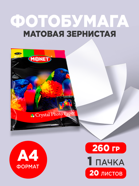 Матовая бумага Monet MRC26020, A4, 260г/м², 20листов, белая, матовая