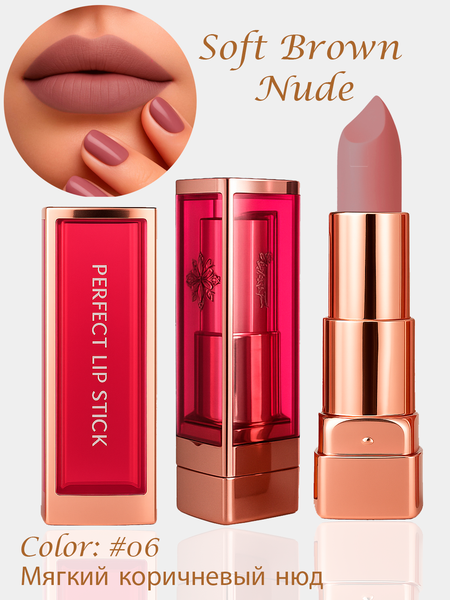 Оттенок Mahogany №06 — это глубокий тёплый коричнево-розовый тон, напоминающий благородный цвет красного дерева. Помада обладает бархатистой кремовой текстурой, равномерно наносится на губы и создаёт мягкое матовое покрытие. Цвет подчёркивает форму губ, делает их визуально объёмнее и придаёт макияжу выразительный, элегантный характер. Преимущества Помада отличается насыщенной пигментацией и комфортной формулой. Она не сушит губы, не подчеркивает шелушения и сохраняет аккуратный вид в течение всего дня. Оттенок Mahogany универсален — подходит для повседневного макияжа, вечерних образов и фотосессий. Корпус выполнен в премиальном стиле KAIDIY: прозрачный розовый пластик сочетается с золотистыми металлическими элементами, создавая дорогой и современный внешний вид. Особенности оттенка Mahogany №06 Тёплый коричнево-розовый тон гармонично ложится на губы и подходит практически для любого типа внешности. Этот оттенок делает лицо более выразительным, подчёркивает природный тон кожи и придаёт макияжу мягкую, спокойную глубину. Особенно хорошо смотрится на тёплых и нейтральных подтонax. Состав (кратко) Формула содержит смягчающие и увлажняющие компоненты, включая витамин Е, растительные масла и бархатные воски. Стойкие пигменты обеспечивают насыщенный, ровный цвет без дискомфорта. Упаковка Премиальный дизайн сочетает прозрачный розовый корпус и золотистые детали. Упаковка прочная, стильная и подчёркивает статусность бренда. Подходит для личного использования и в качестве подарка. Способ применения Нанесите помаду на чистые губы. При необходимости нанесите второй слой для более глубокого оттенка. Контурный карандаш в тёплом коричнево-розовом тоне поможет создать идеальную форму. Кому подойдёт оттенок Mahogany №06 подходит для тех, кто предпочитает насыщенные, тёплые и благородные нюдовые тона. Идеален для офиса, повседневного макияжа, вечерних мероприятий и осенне-зимних образов. Подходит для светлой, средней и тёплой кожи.