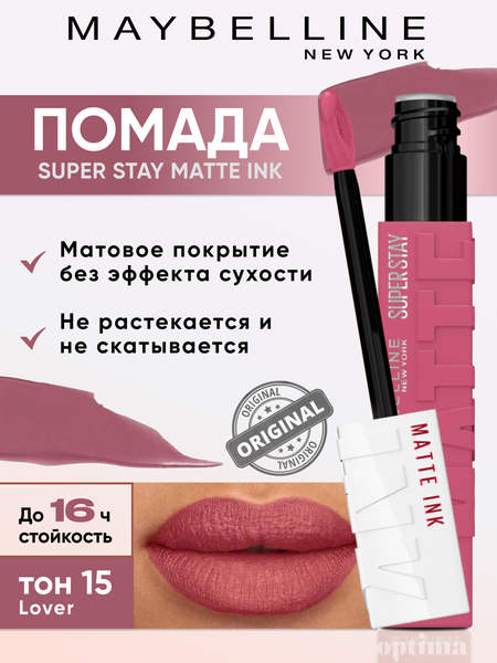 {"widgets":{"@light/ProductM2bEdoOnlyBadge":{"/content/page/fancyPage/defaultPage/m2bEdoOnlyBadge":{"wrapperProps":{"margins":{"top":"2"}},"isM2bEdoOnlyEnable":false}}},"meta":{"/content/page/fancyPage/defaultPage/m2bEdoOnlyBadge":{"name":"@light/ProductM2bEdoOnlyBadge"}},"collections":{"views":{"defaultOffer":"vi_7743077685904225371_bi_7886453015361966308"},"viewItem":{"vi_7743077685904225371_bi_7886453015361966308":{"id":"vi_7743077685904225371_bi_7886453015361966308","composeId":"7743077685904225371","buyOptionId":"bi_7886453015361966308"}},"buyOption":{"bi_7886453015361966308":{"id":"bi_7886453015361966308","title":"Maybelline New York Помада для губ Super Stay Matte Ink, тон 15 Lover, суперстойкая жидкая матовая, 5 мл","offerId":"9yo_DY4DaoRO9ARA4mlZDg","slug":"maybelline-ny-pomada-zhidkaya-matte-ink-15-0","trackingLinks":{"cpa":"/U_u-EjLFLx8ULvFm47XnH2BjXoaV","promotionUrl":"/OQjIZ9zpRQiNVY2lVe3d3d2Vp58U"},"skuId":"100465356150","productId":"212820249","categoryId":"4748057","navnodeId":"16681160","departmentId":"54438","showUid":"17716329596786208397806001","counterStep":1,"minimum":1,"maximum":5,"price":{"value":177865,"currency":"UZS"},"vendorId":"8367646","feeShow":"OTNDnItfwRMlLJby2gHopboPng-DW56oF7kHjalpObf04pXBUw-0y3S-nSgAQ9Xei4eEp2P1jNP7fi-lRhurmK-mcu0mEam0VDw38PmecDxBrU_Q-URfdaFtOgAvv9Gzo_9HJQkhnX_8FmdsQ_kFUylKUHE2V9L_qD-0oc_gAqexmYd165l4QCjQyeXWKwp-zs2IMYgUUfaZXtBQfxfrl-2fY8zzLHu7lvuQk3MmHGdBREeg-APywUkkVVumD2WfvKrH9MPdFwm5ztu3cJNoWw3crZkMGUyjadnyIdDmvpU,","feedId":"3156607","feedOfferId":"3156607.525996","shopId":"431782","supplierId":"3300808","businessId":"710044","supplierName":"iOptima","businessName":"iOptima","hasAnySize":false,"hasAnyDelivery":true,"benefitTypeCode":"waremd5","promos":[{"key":"xD1-78LDt8ve5lk-5jj0FQ","type":"empty-promo","shopPromoId":"cf_135726","anaplanId":"cf_135726","landingUrl":"https://market.yandex.ru/special/empty-promo-landing?shopPromoId=cf_135726"}],"flags":["isVisual","isFby","isOnDemand","isCrossborder"],"analytics":{"warehouseId":"172","paymentType":"ANY","paymentMethodTypes":["BY_CARD_ONLINE","BY_CARD_TO_COURIER","IN_CASH"],"deliveryOptions":[{"deliveryType":"pickup","fromDate":1774224959,"toDate":1774397759,"priceInfo":{"value":0,"currency":"UZS"}},{"deliveryType":"pickup","fromDate":1774224959,"toDate":1774397759,"priceInfo":{"value":0,"currency":"UZS"}},{"deliveryType":"delivery","fromDate":1772410559,"toDate":1772583359,"priceInfo":{"value":0,"currency":"UZS"}}],"shopSku":"525996","placementType":"3P","ownMarketPlace":true,"shopSlug":"yandex-market","yandexBnplInfo":{"enabled":true},"promos":[{"key":"xD1-78LDt8ve5lk-5jj0FQ","type":"empty-promo","shopPromoId":"cf_135726","landingUrl":"https://market.yandex.ru/special/empty-promo-landing?shopPromoId=cf_135726","isPersonal":false,"description":"Новые_акции_для_лендингов_полок_УЗБ_Beauty_1201"}],"hypeBadge":{"hasBadgeRare":false}},"deliveryType":"PICKUP","imageMeta":{"namespace":"mpic","groupId":5330487,"key":"2a0000019ab6d5ec8826c7cef18d2841cc7e"}}},"market2Business":{"current":{"id":"current","isM2b":false}}}}