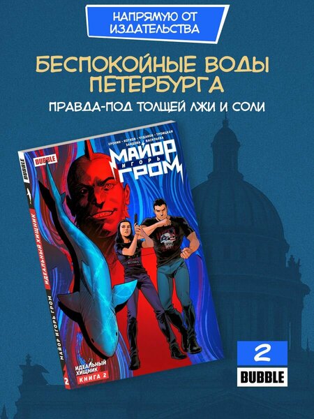«Майор Игорь Гром. Идеальный хищник» — захватывающий детективный комикс с элементами триллера и криминального боевика Большая белая акула в водах Финского залива — идеальное новое дело для майора Игоря Грома и Айсы Улановой! Этот том комиксов рассказывает о том, как опасный морской хищник оказался в порту Севкабель и какую роль в этом сыграла китайская мафия. Если вы ищете комиксы с детективным сюжетом, криминальными интригами и напряжёнными расследованиями, «Майор Игорь Гром. Идеальный хищник» — отличный выбор. Игорю предстоит занырнуть глубже в тёмные воды криминального мира Петербурга, раскрыть тайны прошлого своей новой напарницы и противостоять харизматичному бизнесмену и эко-активисту, скрывающемуся за маской кровожадного монстра.