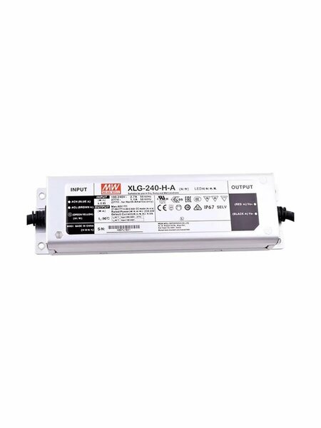 AC-DC, 239.6Вт, стабилизатор тока, IP67, вход 100…305В AC, 47…63Гц, ККМ, выход 4280…6660мА/27…56В (режим пост. мощности), изоляция 3750В AC, в кожухе 219х63х35.5мм, -40…+90°С (корпус), встр. потенциометр Модель серии XLG-240 — это светодиодный драйвер AC/DC мощностью 240 Вт с режимом постоянной мощности. Конструкция металлического корпуса и уровень защиты IP67 позволяют использовать эту серию как внутри, так и снаружи помещений. Более того, инновационная способность адаптироваться к окружающей среде позволяет этой серии надежно освещать светодиоды для всех видов применения практически в любых местах по всему миру, где могут быть установлены светодиодные светильники. XLG-240 разработан с учетом последней версии международных правил безопасности IEC61347/GB19510.1 и UL8750. Выходная мощность и схема регулировки яркости также полностью соответствуют новым правилам и имеют изоляцию, обеспечивающую безопасность пользователя и системы освещения во время установки. Особенности Широкий входной диапазон 100–305 В переменного тока (класс I) Полная выходная мощность при работе в режиме постоянной мощности 70–100 %. Защита от перенапряжения Функция затемнения 3 в 1 (выключение затемнения и изоляция) Срок службы > 50 000 часов Применение Освещение небоскребов Уличное освещение Освещение сцен Освещение для рыбалки Освещение для садоводства