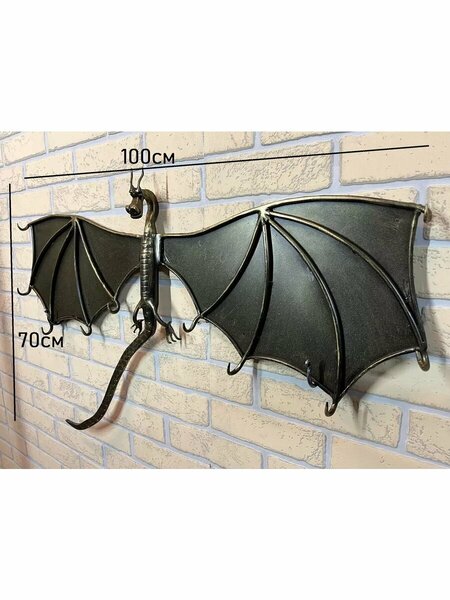 Кованый дракон Размер: 100х70см вес 3.5 кг. цвет черный с зеленой патиной. Если Вы хотите, чтобы входя в Ваш дом, чувствовалось особое настроение легкости и утонченности, то Вам понадобится кованая вешалка в прихожую. Отличная идея декора для дома: в гостиную, прихожую, гардеробную. Мы все любим красивые предметы интерьера. Предлагаем вешалку дракон, которая порадует не только детей, но и взрослых, украсит стены вашего дома наилучшим образом. Вешалка будет отличным подарком для ваших друзей и родственников или начальника, и станет надежным местом для хранения одежды. С этим настенным держателем в холле никто точно не будет искать. Не оставит без внимания любого гостя. Ручная работа. Горячая ковка. Сварка используется по периметру сварных соединений, что значительно повышает прочность. Покраску используем порошковую, что значительно повышает износостойкость. Если Вы хотите, чтобы входя в Ваш дом, чувствовалось особое настроение легкости и утонченности, то Вам понадобится кованая вешалка в прихожую.