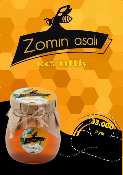 Мёд Зоминский натуральный, 100% — 350 г Краткое описание: Натуральный мёд, собранный в экологически чистом горном районе Зомина. Без сахара, сиропов, консервантов и искусственных добавок. ⸻ Подробное описание: Зоминский мёд производится в одном из самых чистых и природных регионов Узбекистана — горной зоне Зомина. Благодаря уникальному климату, чистому воздуху и разнообразию медоносных растений, мёд обладает насыщенным вкусом, приятным ароматом и высокой пищевой ценностью. Мёд собирается традиционным способом, без термической обработки, что позволяет сохранить все природные ферменты, витамины и микроэлементы. Продукт подходит для ежедневного употребления, используется в народной медицине, при приготовлении напитков, десертов и полезных блюд. ⸻ Состав: • 100% натуральный пчелиный мёд • Без добавления сахара • Без глюкозных сиропов • Без консервантов и красителей ⸻ Полезные свойства: ✔ Укрепляет иммунитет ✔ Повышает энергию и выносливость ✔ Полезен при простуде и снижении сил ✔ Улучшает пищеварение ✔ Натуральный источник витаминов и минералов ⸻ Характеристики товара: • Вес: 350 г • Тип упаковки: банка (пластиковая / стеклянная) • Цвет: от светло-золотистого до янтарного (зависит от сезона) • Консистенция: густой, натуральный • Происхождение: Узбекистан, Зоминский регион ⸻ Условия хранения: Хранить в сухом, прохладном месте при температуре от +5°C до +20°C. Беречь от прямых солнечных лучей. ⸻ Рекомендуется для: • Семейного употребления • Детей и взрослых • Спортсменов • Здорового питания • Подарка