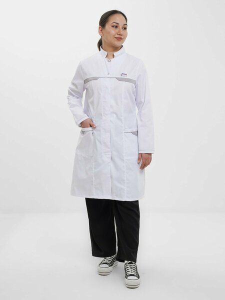 Женский медицинский халат белого цвета с длинным рукавом и воротником-стойкой производства фирмы Nibax. Воротник-стойка в халате женском создает завершенный образ. Длина халата укороченная. Минималистичный дизайн халата придает образу элегантности. Медицинский халат застегивается на пуговицы. Модель с двумя удобно расположенными и вместительными карманами. Небольшие боковые разрезы вдоль ноги визуально вытягивают силуэт, к тому же не стесняют ваших движений. Приталенный силуэт добавляет женственности. Ткань средней плотности, очень качественная, стойкая к выгоранию и истиранию, легко отстирывается, относится к категории малосминаемых. Больше наших моделей по марке Nibax в нашем магазине. При определении размера мы рекомендуем пользоваться нашей таблицей размеров/ростов.