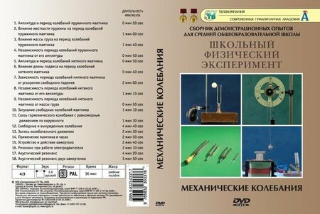 Учебный фильм "Механические колебания" представляет собой видеосборник демонстрационных опытов по физике для средней общеобразовательной школы. В учебный фильм включены 18 опытов: 1. Амплитуда и период колебаний пружинного маятника – 0 мин. 50 сек. 2. Влияние жёсткости пружины на период колебаний пружинного маятника – 1 мин. 00 сек. 3. Влияние массы груза на период колебаний пружинного маятника – 1 мин. 40 сек. 4. Независимость периода колебаний пружинного маятника от его амплитуды – 0 мин. 50 сек. 5. Амплитуда и период колебаний нитяного маятника – 0 мин. 50 сек. 6. Влияние длины подвеса на период колебаний нитяного маятника – 0 мин. 40 сек. 7. Зависимость периода колебаний нитяного маятника от ускорения свободного падения – 2 мин. 00 сек. 8. Независимость периода колебаний нитяного маятника от его амплитуды – 1 мин. 10 сек. 9. Независимость периода колебаний нитяного маятника от массы груза – 0 мин. 50 сек. 10. Затухание свободных колебаний маятника – 1 мин. 10 сек. 11. Связь гармонического колебания с равномерным движением по окружности – 1 мин. 30 сек. 12. Свободные и вынужденные колебания – 4 мин. 40 сек. 13. Запись колебательного движения – 2 мин. 30 сек. 14. Применение маятника в часах – 2 мин. 50 сек. 15. Устройство и действие камертона – 2 мин. 40 сек. 16. Резонанс при работе электродвигателя – 2 мин. 10 сек. 17. Акустический резонанс – 4 мин. 20 сек. 18. Акустический резонанс двух камертонов – 3 мин. 50 сек. Продолжительность: 36 мин. Формат: DVD-video