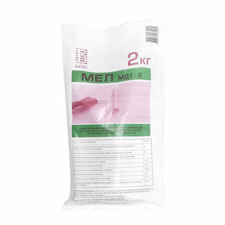 Применяется для производства вяжущих веществ (известь, портландцемент), в качестве дешёвого материала (пигмента) для побелки, окраски заборов, стен, бордюров, для защиты стволов деревьев от солнечных ожогов. Характеристики: Тип товара Мел Маркировка МДТ-2 В упаковке, кг/л 2 Вес брутто, кг 2 Торговая марка Витеп Производитель Витеп