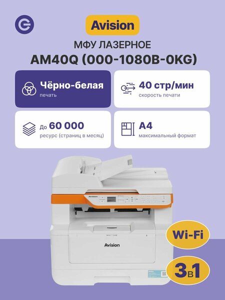 Avision AM40Q - это многофункциональное устройство, ориентированное на скорость и эффективность, с широкими возможностями для печати, копирования и сканирования. Преимущества: • Эффективность: Высокая скорость печати/копирования и вместительный АПД для быстрого обработки документов. • Универсальность: Подходит для сканирования, копирования и печати, включая двусторонние документы. • Простота использования: Интуитивно понятный интерфейс и удобный ЖК-экран. • Профессиональное качество: Цветное сканирование с высоким разрешением. • Дополнительные функции: Удаленное управление и печать с USB-накопителя.