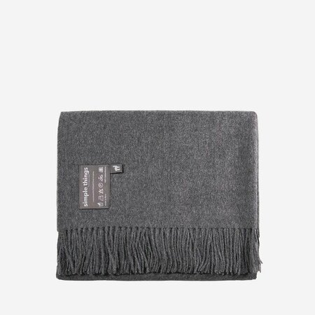 Большой плед Mid-Grey Natural серого оттенка. Изделие из 100% шерсти бэби-альпака согреет вас дома или на прогулке. Бахрома сплетена вручную. Изготовлено в Ирландии.