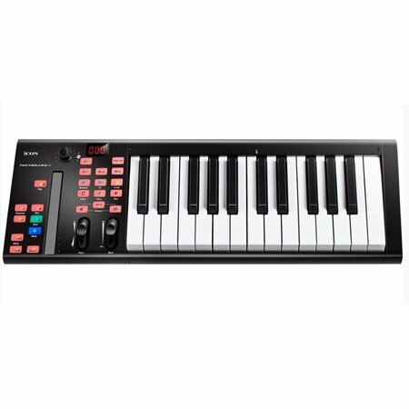 Портативная MIDI-клавиатура. 25-клавишная клавиатура с чувствительностью к силе нажатия. 23 кнопки, 2 колеса, сенсорная полоса и энкодер для управления, ЖК-дисплей для навигации. Входы для педалей сустейна и экспрессии, MIDI-выход, питание от опционального адаптера или по USB. Совместимость с платформами Windows, macOS и iOS (см. версии).