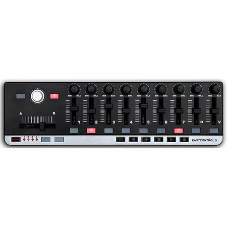 LAudio EasyControl - MIDI-контроллер.9 назначаемых ручек управления.9 назначаемых ползунков управления.11 назначаемых кнопок со светодиодной подсветкой.6 кнопок со светодиодной подсветкой, назначаемых на контроллеры.4 банка памяти для различных настроек. 1 слайдер мастер громкости.