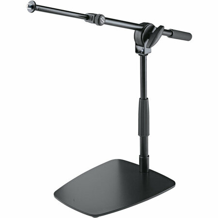 K&M 25993-300-55 низкая телескопическая микрофонная стойка-журавль. Компактная удобная стойка для бас-барабанов, усилителей, кахонов и т. д. Там где основание в виде треноги по каким-то причинам неудобно. Четыре резиновых ножки под основанием поглощают возможные вибрации от пола. Отличная стойка для концертов и студии.