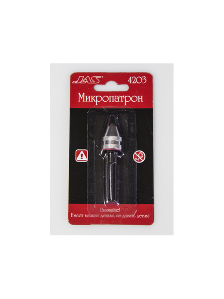 Микропатрон для сверл диаметром 0,3-3,2 мм Шаг резьбы 0,77 мм Диаметр резьбы 6,35 мм Длина хвостовика 43,2 мм Диаметр хвостовика 2,6 мм Подходит с мини-станку сверлильному 10501 и бормашине 10371.