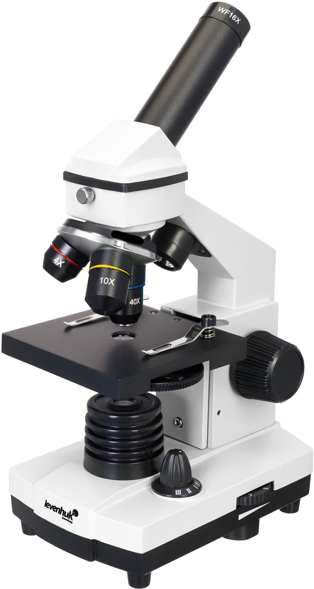 микроскоп, объективы: 4х, 10х и 40хs, окуляр: wf16x, предметный столик с зажимами, диск с диафрагмами, конденсор, встроенные нижний и верхний осветители на светодиодах, сетевой адаптер (питание 220 в, 50 гц), набор для опытов levenhuk k50, инструкция по эксплуатации и гарантийный талон