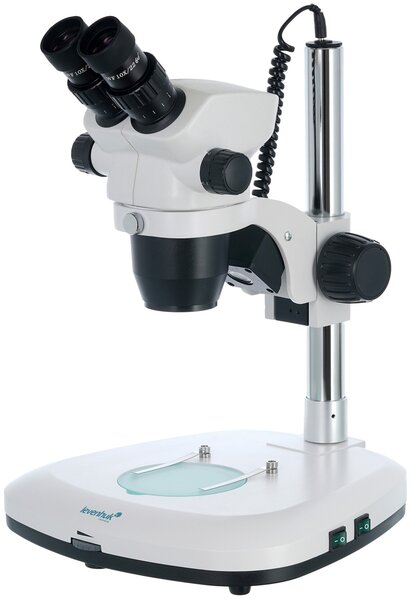 Бинокулярный стереоскопический микроскоп Levenhuk ZOOM 1B можно использовать для изучения крупных образцов любой степени прозрачности. Он позволяет использовать и проходящий, и отраженный свет в наблюдениях по методу светлого поля. Микроскоп хорошо подойдет для профессиональной работы часового мастера, ювелира, геолога, зоолога, ботаника, филателиста, нумизмата. Благодаря простоте управления микроскоп можно использовать и для любительских исследований. Бинокулярная насадка позволяет вести наблюдения сразу обоими глазами – это снижает нагрузку на зрение и делает длительную работу с образцами более удобной. Визуальная часть имеет наклон, всю насадку можно поворачивать на 360°. В комплектацию включены широкопольные окуляры с 10-кратным увеличением, которые обеспечивают хороший угол обзора. Объектив панкратический, а значит, кратность микроскопа можно изменять плавно, а не ступенчато. Общее увеличение оптики составляет от 7 до 45 крат. Есть грубая настройка резкости. Комбинированная подсветка представляет собой два светодиода, расположенных сверху и снизу от предметного столика. Яркость подсветки можно регулировать, для питания светодиодов используется сеть переменного тока. Насадка, штатив и основание микроскопа сделаны из прочного металла, поэтому Levenhuk ZOOM 1B – это надежный и долговечный прибор. Основные особенности: • Бинокулярная насадка, широкопольные окуляры, панкратический объектив • Плавно изменяемое увеличение в диапазоне от 7 до 45 крат • Рабочее расстояние в 235 мм позволяет изучать крупные объекты • Верхняя и нижняя подсветка для наблюдений в проходящем и отраженном свете • Регулировка яркости, питание от сети переменного тока Комплектация: • Микроскоп • Окуляры WF10x с наглазниками – 2 шт. • Панкратический объектив: 0,7x–4,5x • Предметный столик из матового стекла • Двусторонняя черно-белая пластина • Шнур питания с сетевым адаптером • Пылезащитный чехол • Инструкция по эксплуатации и гарантийный талон Внимание! Помните, что напряжение сети в России и большинстве европейских стран составляет 220–240 В. Если вы хотите использовать устройство в стране с другим стандартом сетевого напряжения, необходимо включать его в розетку только через соответствующий конвертер (преобразователь напряжения).