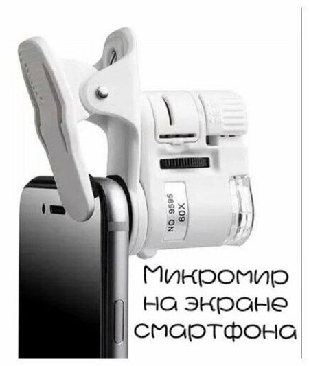 Микроскоп на смартфон - это уникальное устройство, которое позволяет исследовать различные объекты с помощью камеры вашего смартфона. Основное преимущество этого микроскопа - его 60-кратное увеличение. Это позволяет детально рассмотреть даже самые мелкие детали, что делает его незаменимым инструментом для любителей науки и профессионалов. Устройство оснащено светодиодной подсветкой, что обеспечивает яркое и четкое изображение. Вы можете использовать как обычную, так и ультрафиолетовую подсветку, в зависимости от ваших потребностей. Микроскоп крепится к смартфону с помощью прищепки, что позволяет легко и быстро установить его на любой поверхности. При необходимости, вы можете отсоединить прищепку и наблюдать увеличенное изображение непосредственно через окуляр. Устройство питается от трех батареек типа LR1130, что обеспечивает его автономность и позволяет использовать в любом месте. Корпус микроскопа изготовлен из пластика, что делает его легким и прочным. Микроскоп на смартфон - это незаменимый инструмент для тех, кто увлекается наукой, каллиграфией, живописью, а также для тех, кто занимается оценкой и проверкой драгоценных камней, тканей, монет и других предметов.