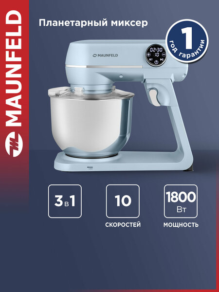 Особенности: Инновационный планетарный миксер органично сочетает в себе дизайн и функциональность, представляя вам кухонную технику совершенно нового уровня. Сенсорное управление. Десять скоростей, благодаря которым вы можете легко регулировать мощность работы миксера, выбрав идеально подходящую скорость. А дополнительный таймер с обратным отсчетом сделает работу с миксером еще удобнее, автоматизировав ее. Низкий уровень шума и вибрации. В устройстве сочетается тонко продуманная конструкция и великолепного качества материалы, что обеспечивает минимум шума и вибрации при работе миксера. Высокая мощность. Совершенное смешивание ингредиентов становится возможным благодаря надежному двигателю с высокой мощностью в 1800 Вт, а планетарная схема движения насадок обеспечит вам приготовление безупречной консистенции смеси. Полный набор насадок, который сокращает время работы на 40%. В комплекте предусмотрены 3 насадки: