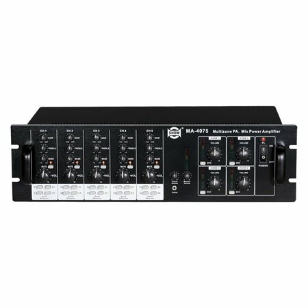 Тип - трансляционный усилитель мощности, Вход - cн1-ср3 mic симметричный ( xlr), Вход - ch4-ch5 линейный (тюльпан), Выходная мощность - 4 канала по 50 вт, Выходное напряжение - 25v/50v/100v, Сопротивление нагрузки - 4 om/8 om, Дополнительно - имется во .