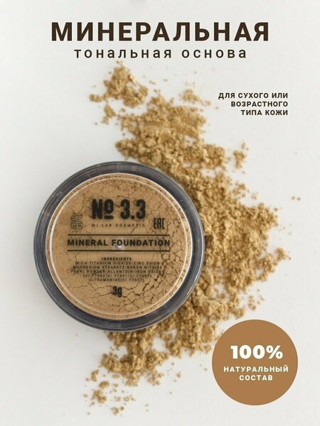 MI LAB - российский производитель минеральной декоративной косметики. 4 оттенка пудры нейтрального бежевого оттенка: Light №3.0 (очень светлый) - для очень светлой, почти фарфоровой, белоснежной кожи. Light medium №3.1 (светлый) - для светлого тона кожи, подходит большей части европейской России зимой и весной. Medium №3.2 (средний) - для чуть темнее средне - светлого тона кожи, для загорелой кожи светло среднего оттенка. Dark medium №3.3 (темный) – для очень смуглой или загорелой кожи. Все пудры основы MI LAB имеют нейтральный бежевый подтон и подстраиваются под тон кожи примерно через 15-20 минут после нанесения. Минеральная тональная основа MI LAB подходит для сухой и возрастной кожи или в качестве HD-пудры. Содержит в составе нитрид бора, который создает эффект отфотошопленной кожи и обеспечивает приятное скольжение. Пудра жемчуга в составе позволяет удерживать влагу в коже. Основа не сушит кожу, дает эффект бархатистой кожи и легкого свечения. Основа имеет деликатный сатиновый финиш. Пудра пыльца MI LAB полный аналог тональному крему, с более естественным покрытием. Основа Выравнивает тон кожи, Перекрывает покраснения и постакне, Скрывает несовершенства, Незаметна на коже, Создает естественное покрытие, Не забивает поры, Позволяет коже дышать, Стойкая, не боится воды и пота. Солнцезащитная пудра с spf защищает от УФ излучения и имеет SPF 20 - 25. Натуральная эко пудра на 100% состоит из природных минералов, измельченных до состояния пыльцы. Имеет легкую, воздушную и нежную текстуру. В производстве мы используем только чистые ингредиенты, которые имеют сертификаты безопасности. Mineral Powder MI LAB содержит в составе аллантоин, который способствует заживлению и восстановлению кожи при повреждениях, обладает увлажняющими и смягчающими свойствами, а оксид цинка является натуральным антибактериальным средством - оказывает противовоспалительный и антисептический эффект, а также является физическим солнцезащитным фильтром. Гипоаллергенная рассыпчатая пудра имеет безопасный состав: не содержит отдушки, спирт, минеральные масла, консерванты, химические красители. Минеральная косметика MI LAB не только позволяет создать красивый естественный макияж, но и ухаживает за кожей. Mineral pollen подходит для создания естественного дневного и вечернего макияжа. Способ применения: нанести дневной уход и дать ему впитаться 10-15 мин. Высыпать небольшое количество пудры в крышечку. Достаточно объема пудры с 2-3 спичечных головки для одного слоя. Круговыми движениями набрать пудру на кисть. Рекомендуем использовать плотно набитую синтетическую кисть Кабуки с плоским срезом ворса. Круговыми полирующими движениями распределить основу по всему лицу. Минеральная пудра усаживается на коже в течение 15 минут. При необходимости нанести еще 1-2 слоя.