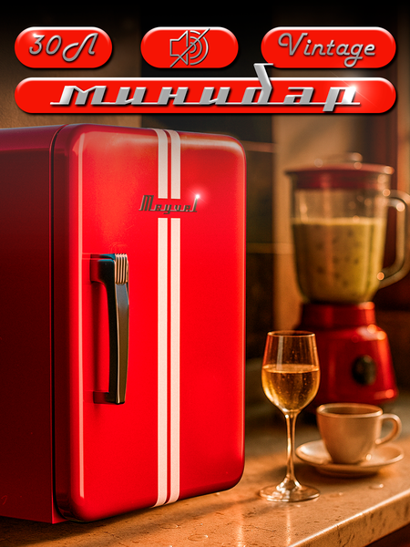 Гибридный мини-бар Meyvel MMT-30VR Meyvel MMT-30VR — стильный красный мини-бар, который станет ярким акцентом интерьера. Представьте себе: вечеринка в стиле ретро, и этот красавец с плавными линиями и сочным цветом приковывает к себе взгляды. Но модель MMT-30VR — это не только про красоту. Компактное, но вместительное устройство на 30 л — настоящий помощник в поддержании комфорта. Благодаря гибридной системе охлаждения (а это значит, что здесь нет шумящего компрессора, только тихая и эффективная работа) мини-бар поддерживает оптимальную температуру от 0 до +10°C, если в комнате около 21°C. Это идеальные условия для охлаждения напитков, закусок и даже косметики. Модель отдельностоящая, поэтому вы можете разместить ее, где угодно: в гостиной, номере отеля, кафе, спальне, офисе и даже в уютном уголке на даче. Внутри предусмотрена одна съемная полка, чтобы оптимально организовывать пространство, а также две удобные полочки на дверце для мелочей. Представьте, как приятно иметь под рукой прохладительные напитки, не вставая с дивана во время просмотра любимого фильма. Или как удобно держать косметику в прохладе в жаркий летний день. Meyvel MMT-30VR — это комфорт, стиль и функциональность в одном флаконе. Он станет вашим верным спутником в создании уютной атмосферы. Преимущества мини-бара Meyvel MMT-30VR: