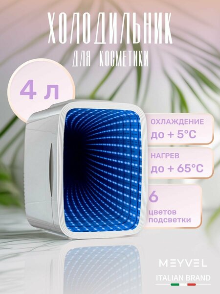 Холодильник для напитков Meyvel MD-04C3W-RGB Холодильник для напитков и косметики Meyvel MD-04C3W-RGB — это универсальное и многофункциональное устройство, которое идеально подойдет для использования в офисах, дома или в гостиницах. Компактные размеры и портативность позволяют легко перемещать его в нужное место. Данная модель оснащена режимом охлаждения, поддерживающий температуру на уровне +5°C, что идеально подходит для хранения напитков, продуктов, косметики или лекарств. Также предусмотрен режим нагрева, настройки которого варьируются от +45 до +65°C. Изюминкой холодильника является наличие многоцветного светодиодного освещения. Пользователь может выбрать один из шести доступных оттенков: красный, синий, зеленый, салатовый, фиолетовый или голубой. Это не только создает приятную атмосферу, но и позволяет быстро идентифицировать содержимое прибора. Благодаря своей компактности и функциональности, Meyvel MD-04C3W-RGB станет незаменимым помощником как в офисе или гостинице, так и в домашних условиях. Он позволит поддерживать оптимальную температуру для хранения напитков, продуктов, косметики и медикаментов, а также добавит стильный акцент в любой интерьер. Особенности мини-холодильника для напитков Meyvel MD-04C3W-RGB Компактный размер. Функции нагрева и охлаждения. 6 цветов подсветки. Тихая работа. Питание 220/240 В.