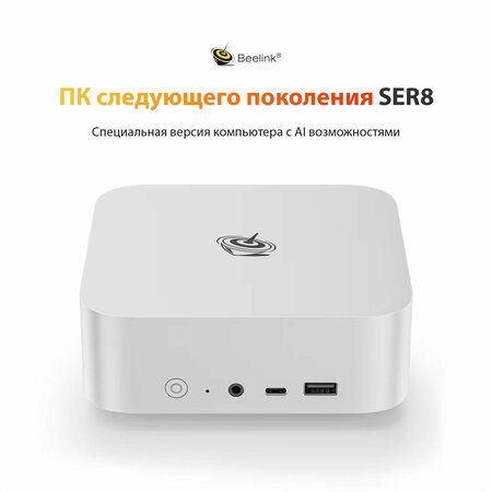 Новый мини компьютер 2024 года, Beelink SER8 на процессоре AMD Ryzen 7 8745HS (8 ядер, 16 потоков, максимум 4900 mhz), 12 графических ядер AMD Radeon 780M. Цвет серебристый, корпус из аллюминия. Новый дизайн ориентирован на максимульное охлаждения. Оперативная память ddr5 5600mhz 32gb (16gb+16gb), с возможностью расширения до 256Gb. SSD 1Tb, максимально расширяется до 8 Tb. Поддержка до 3 мониторов. На пк имеется готовая к установке Windows 11 Pro. Лицензия привязана аппаратно к материнской плате. Размеры: (13,5х13,5х4,5 см)