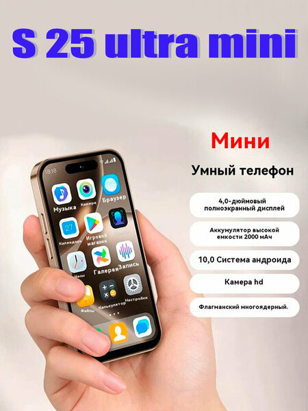 Этот чудесный mini смартфон является самым маленьким аналогом обычного смартфона, предлагая уникальный пользовательский опыт для поклонников миниатюрных, но мощных устройств. Работает смартфон на базе современной операционной системы Android 12, что гарантирует мгновенный доступ к последним обновлениям и широчайшему спектру приложений. Наслаждайтесь ярким и четким изображением на превосходном OLED дисплее с высокой детализацией, превращая просмотр видео и чтение текстов в истинное удовольствие. Несмотря на свои скромные размеры, этот миниатюрный гигант оснащен 4-ядерным процессором, который в сочетании с 2 ГБ оперативной памяти обеспечивает невероятную скорость работы и плавную многозадачность. Встроенные 16 ГБ памяти предоставляют достаточно места для хранения всех ваших фотографий, видео и приложений, а основная камера на 13 Мп позволит делать качественные снимки, сохраняя важные моменты вашей жизни. С мини смартфоном вы всегда будете на связи благодаря поддержке современных стандартов 4G, 3G и 5G, а также Wi-Fi, Bluetooth и Wi-Fi Direct. Емкость аккумулятора 2000 мА*ч гарантирует длительное время работы без подзарядки, а возможность использования двух SIM-карт типа mini-SIM делает его универсальным выбором для любых нужд. Элегантный дизайн и компактные размеры позволяют этому мини телефону удобно помещаться в любой карман, становясь вашим идеальным помощником в повседневной жизни.