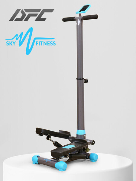 Министеппер с поручнем DFC SKY FITNESS – идеальное решение для домашних тренировок, сочетающее эффективность, безопасность и удобство использования. Степер подходит как для начинающих, так и для опытных спортсменов, желающих поддерживать физическую форму без посещения тренажерного зала. Максимальная нагрузка на степпер тренажер составляет 100 кг. Гидравлическая система нагрузки обеспечивает плавные и бесшумные движения, снижая нагрузку на суставы. Вы можете регулировать интенсивность своей тренировки, меняя скорость/темп шага. Механизм простой: чем быстрее вы шагаете, тем интенсивнее ваша тренировка. Регулируемая высота поручня на 3 уровня подойдет для комфортной тренировки пользователей разного роста. Прочные рифленые педали с противоскользящим покрытием помогают выполнять упражнения безопасно, а эргономичные поручни поддерживают равновесие во время занятий на степпере. Подставка для планшета позволяет смотреть видео или слушать музыку во время тренировки. Благодаря компактной и экономящей место конструкции мини степпер тренажер легко поместится в большинстве домов или квартир, что делает его удобным выбором для занятий спортом в помещении. Степпер тренажер для дома DFC SKY FITNESS - это отличный тренажер для ног, рук, тела и тренажер для похудения, благодаря которому вы сможете привести себя в форму и сохранить здоровье!