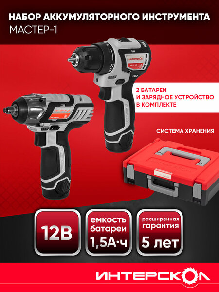 Минимакс "Мастер-1" 687.5.2.70 - двойная польза в одном наборе. Мы объединяем два популярных товара в одно комплексное решение для диагностики, обслуживания и ремонта. ИНТЕРСКОЛ ДА-10/12В 36 - профессиональная аккумуляторная двухскоростная дрель-шуруповерт, самая компактная в своем классе. Модель с бесщеточным (вентильным) двигателем оптимально сбалансирована по весу, размерам и мощности для больших объемов работ с крепежом, сверления отверстий и выполнения сопутствующих операций. Ударный гайковерт ГАУ-100/12Э относится к классу безреактивного инструмента. Вращающий момент образуется за счет соударения на каждом обороте в ударной муфте частей редуктора, называемых молот и наковальня. За счет разницы масс самого инструмента и закручиваемой оснастки, которая обычно достигает 100 и более раз и возникает эффект, когда крупный крепеж можно завернуть или отвернуть, всего лишь слегка придерживая инструмент. Сила затяжки регулируется за счет выбора скорости вращения (и частоты ударов) и ограничения длительности воздействия (количества ударов) Это не просто две коробки по цене одной, это продуманный комплект для решения более широкого круга задач. - Двухскоростной редуктор - Управление скоростью вращения нажатием на кнопку пуска - Сверхкомпактный размер и уменьшенный вес позволяют использовать дрель-шуруповерт для работы в стесненных условиях - Индикатор уровня остаточного заряда - Моноблочное бестрансформаторное часовое зарядное устройство зарядка - Укороченный бесключевой (быстрозажимной) патрон - Присоединительный размер ГАУ-100/12Э - 3/8” с фиксацией оснастки за счет кольцевой пружины. - Удобная обрезиненная рукоятка - Мощная подсветка рабочей зоны для работы в условиях недостаточной освещенности Мультибокс системы хранения в подарок.