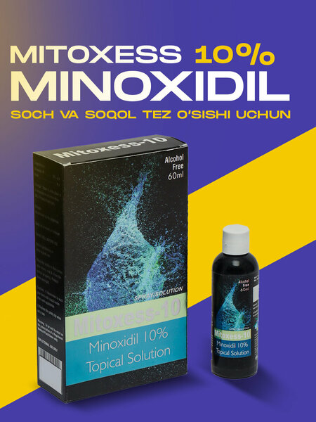 Minoxidil Topical Solution USP Mitoxess 10% - содержит в 2 раза больше активного вещества, чем в стандартном средстве. Миноксидил стимулирует насыщение волосяных луковиц полезными веществами: они доходят в большем объёме, поскольку кровеносные сосуды расширяются. Через 4-5 недель регулярного применения появляются новые волосы. Сначала они тонкие, пушковые, а затем обретают натуральный цвет и становятся плотнее. Средство от облысения адресовано тем, кто недоволен густотой бороды и количеством волос на голове. Препарат не обладает накопительным эффектом, поэтому для обеспечения постоянного результата требуется регулярно наносить его на очаги алопеции. Если средство с 5% миноксидила не действует, следует приобретать препараты с более высокой концентрацией активного вещества. Покупайте миноксидил для бороды, если вы недовольны её объёмом и внешним видом. Как применять? Миноксидил необходимо наносить 2 раза в день на чистую сухую кожу по 1 мл с перерывом между нанесениями около 8-12 часов. Например, с утра перед работой или учебой и вечером после рабочего дня. После нанесения он впитывается около часа, поэтому постарайся применять его так, чтобы он успел впитаться, а не вытерся об воротник куртки или наволочку, если вдруг ты решил сразу лечь спать. Умываться можно минимум через час после применения. Смывать средство не обязательно, оно само высохнет