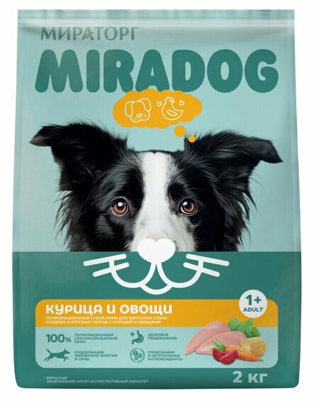 Сухой корм для собак Мираторг с курицей и овощами – это высококачественный продукт, разработанный специально для взрослых собак. Основной ингредиент корма – курица, которая является источником белка и полезных аминокислот. Овощи, такие как морковь и свекла, добавляют в состав корма клетчатку и витамины, что способствует улучшению пищеварения и поддержанию иммунной системы вашего питомца. Корм Мираторг с курицей и овощами упакован в удобные пакетики-паучи, которые легко открываются и закрываются. Вес упаковки составляет 2 кг, что обеспечивает длительное использование корма. Сухой корм Мираторг с курицей и овощами подходит для всех пород собак, включая мелких, средних и крупных. Выбирая сухой корм для собак Мираторг с курицей и овощами, вы обеспечиваете своему питомцу здоровое и сбалансированное питание, а также заботитесь о его благополучии и долголетии.