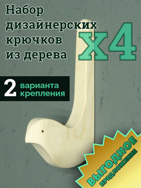 Изящные крючки настенные в виде птичек станут оригинальным и незабываемым элементом декора прихожей, кабинета или детской комнаты. Набор деревянных крючков состоит из 4 штук. Крючки деревянные изготовлены из натурального дерева березы, что придает им особый шарм русской классики и естественность. Крючки на стену крепятся как на клейкую ленту, так и на саморезы (входят в комплект), поэтому можно установить их в любом месте. Декоративные крючки также подойдут в коридор для вешалок, кухню или ванную для полотенец или аксессуаров, в спальню или гардеробную для хранения одежды, а также в баню добавив изысканности в ваш интерьер. Мы ценим ваше время и деньги, поэтому предлагаем доступные цены в сочетании с высоким качеством. Будьте уверены, что мебельные крючки от нашей столярной мастерской не только прочны и надежны, но и безопасны для использования, так как изготовлены из экологически чистого материала - массива березы, не покрыты лаками и маслами. Вешалки настенные идеально подходят для различных предметов, таких как одежда, сумки, головные уборы, зонты и многое другое. Держатели настенные могут быть установлены на дверь, а из за раздельной конструкции - в любой части стены или на любом другом удобном месте. Крючки - это простые, но необходимые предметы мебели, которые помогут вам сохранить порядок и максимально эффективно оптимизировать использование пространства в вашем доме. Этот красивый комплект может стать отличным подарком друзьям и родственникам на новоселье, после ремонта, день рождения, новый год или любой праздник. Если вы ищете универсальные и надежные крючки настенные для использования в вашем доме, то этот продукт отлично подойдет для вас. Переходите в профиль нашего магазина, чтобы ознакомиться с другими изделиями для интерьера нашего производства.
