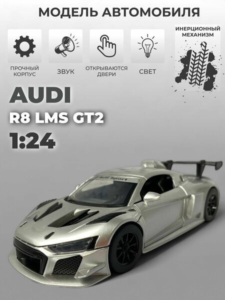 Модель машинки Audi R8 LMS GT2 инерционная, 1:24 серая