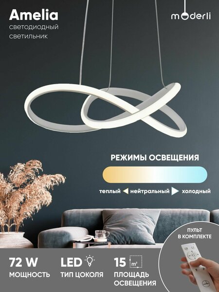 Светильник подвесной светодиодный Amelia — современный стиль и функциональность. Дизайн и материалы. Светильник сочетает в себе стиль хай-тек и утонченный дизайн. Белый матовый корпус с и белый изогнутый плафон из прочного PVC на подвесе, создает динамичную и современную композицию. Его уникальная конструкция не только украсит интерьер, но и обеспечит равномерное освещение площади. Функциональность и освещение. Мощность 72 Вт позволяет светильнику эффективно осветить площадь до 15 кв. м. Возможность выбора температуры свечения (теплый, холодный, нейтральный свет) помогает настроить атмосферу в помещении в зависимости от вашего настроения и потребностей. Регулируемая высота подвеса делает этот светильник подходящим для различных интерьеров и сценариев использования. Управление. В комплект входит удобный пульт управления, с помощью которого можно менять режимы освещения. Для работы пульта необходимы батарейки AAA (не включены в комплект). Применение. Светильник Amelia идеально подходит для гостиных, спальни, прихожих, кухонь и загородных домов. Его современный и лаконичный дизайн добавит стильный акцент в любой интерьер, будь то жилое или коммерческое пространство. Светильник будет отличным выбором для освещения и украшения различных помещений. Светильник потолочный светодиодный с кольцами – стильное и функциональное освещение для вашего интерьера. Этот лед светильник потолочный с пультом станет отличным решением для любого интерьера. Стильный дизайн позволяет использовать его как светильник декоративный в гостиной, спальне или рабочем пространстве. Компактные размеры и элегантная форма делают его идеальным выбором как люстра потолочная, обеспечивая эффективное освещение даже в небольших помещениях. Светильник оснащен современной LED технологией, что гарантирует высокую яркость при минимальном энергопотреблении. Этот led светильник потолочный обеспечивает равномерное распределение света без мерцания, создавая комфортную атмосферу в помещении. Благодаря долговечности светильник led прослужит вам долгие годы без необходимости замены ламп. Этот светильник на кухню со светодиодной лентой прекрасно впишется в интерьер благодаря нейтральному и стильному дизайну. Он также идеально подходит как светильник в комнату, создавая уютное и мягкое освещение. Кроме того, он относится к категории светильники для натяжных потолков, что делает его универсальным решением для современных интерьеров. Этот led светильник в виде колец легко монтируется и подходит для различных типов потолков. Он прекрасно сочетается с любыми стилями интерьера, от классики до минимализма. Если вам нужен надежный и стильный источник света, этот потолочный светильник – отличный выбор!