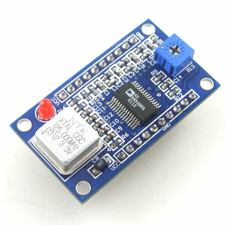 Основные технические характеристики AD9850 (при напряжении питания 5В). 2 выходных сигнала Диапазон генерируемых частот от 0Hz до 40 МНz, в пределах которого можно получить любое значение частоты с точностью 1Hz Частота тактового генератора, МНz: 1…125 Максимальный потребляемый ток (при fin=125 МГц), мА 95 Число разрядов ЦАП 10 Этот модуль может выводить синусоиду или меандр. Особенности: 2 выхода синусоиды и 2 выхода меандра. AD9850 работает в диапазоне частот: 0-40 МГц. после 20-30 МГц частоты гармоник возрастает, сигнал будет все меньше и меньше в чистоте. Прямоугольный сигнал на выходе (Меандр) получается в диапазне: 0-1 МГц. Режим параллельного и последовательного ввода данных может быть выбран с помощью перемычек. Синтезатор частот AD9850 использует кварцевый генератор на 125 МГц. Размер платы: 42х30 мм. Вес: 7 г. Предназначен для подготовленных радиоюбителей, знакомы с програмированием и работой синтезаторов частот.