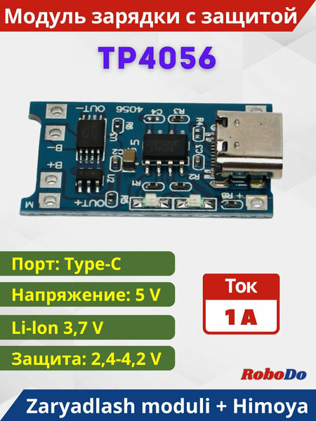 {"widgets":{"@light/ProductM2bEdoOnlyBadge":{"/content/page/fancyPage/defaultPage/m2bEdoOnlyBadge":{"wrapperProps":{"margins":{"top":"2"}},"isM2bEdoOnlyEnable":false}}},"meta":{"/content/page/fancyPage/defaultPage/m2bEdoOnlyBadge":{"name":"@light/ProductM2bEdoOnlyBadge"}},"collections":{"views":{"defaultOffer":"vi_3748361157263132283_bi_13390757525227226218"},"viewItem":{"vi_3748361157263132283_bi_13390757525227226218":{"id":"vi_3748361157263132283_bi_13390757525227226218","composeId":"3748361157263132283","buyOptionId":"bi_13390757525227226218"}},"buyOption":{"bi_13390757525227226218":{"id":"bi_13390757525227226218","title":"Модуль зарядного устройства и защиты литиевой батареи TP4056A","offerId":"8iilL3hK39rJs5E3MUujkg","slug":"modul-zaryadnogo-ustroystva-i-zashchity-litiyevoy-batarei-tp4056a","trackingLinks":{"cpa":"/dV_81hBS9B5RW5CFFMOEI9Uzd2lC","promotionUrl":"/lLMwLXFCFDhZhW6qY7erRSC5tMTh"},"skuId":"4425698962","productId":"1198715943","categoryId":"7076558","navnodeId":"61856","departmentId":"54430","showUid":"17716349746471207912106001","counterStep":1,"minimum":1,"maximum":2,"price":{"value":10000,"currency":"UZS"},"vendorId":"15728405","feeShow":"OTNDnItfwRMlLJby2gHopb54sos-FjG2POpjPvrc2K0HAP7wkXgypGX4M02cOeLRg7Ce3i0H8ubU_kxizBzE3TIEnU2LKW9aXOyG6gOmoYlnxkrWMMO2zgmWMsR42r9oWyuj4glL5CyMZcRPkdZ2aaU92dbMymN0G_Tp3ygjIR3nyEmG3pBdN38tCCxTBI3yGsivH_pc4W3q0CPvwr9xjtmoVNvf6i7qgno0Lc8ow3aJ0DklXMLJncafLntQecvqCIRGuTh4veMQaIhrydCmzMqleSqWXhIkxNIz7TKxVF6HvsmRKpbVgQ,,","feedId":"55196645","feedOfferId":"55196645.MRKT-HBGLJGR8","shopId":"431782","supplierId":"210416323","businessId":"210201337","supplierName":"RoboDo","businessName":"RoboDo","hasAnySize":false,"hasAnyDelivery":true,"benefitTypeCode":"waremd5","basePrice":{"value":14000,"currency":"UZS"},"flags":["isFby","isOnDemand","isPartialCheckoutAvailable"],"analytics":{"warehouseId":"311","paymentType":"ANY","paymentMethodTypes":["BY_CARD_ONLINE","BY_CARD_TO_COURIER","IN_CASH"],"deliveryOptions":[{"deliveryType":"delivery","fromDate":1771721374,"toDate":1771721374,"priceInfo":{"value":0,"currency":"UZS"}},{"deliveryType":"pickup","fromDate":1771721374,"toDate":1771721374,"priceInfo":{"value":0,"currency":"UZS"}},{"deliveryType":"pickup","fromDate":1771721374,"toDate":1771721374,"priceInfo":{"value":0,"currency":"UZS"}},{"deliveryType":"delivery","fromDate":1771721374,"toDate":1771721374,"priceInfo":{"value":0,"currency":"UZS"}}],"shopSku":"MRKT-HBGLJGR8","placementType":"3P","ownMarketPlace":true,"shopSlug":"yandex-market","yandexBnplInfo":{"enabled":true},"hypeBadge":{"hasBadgeRare":false}},"deliveryType":"DELIVERY","imageMeta":{"namespace":"mpic","groupId":14688430,"key":"2a000001973a7e7605329c8b16334bc998dc"}}},"market2Business":{"current":{"id":"current","isM2b":false}}}}