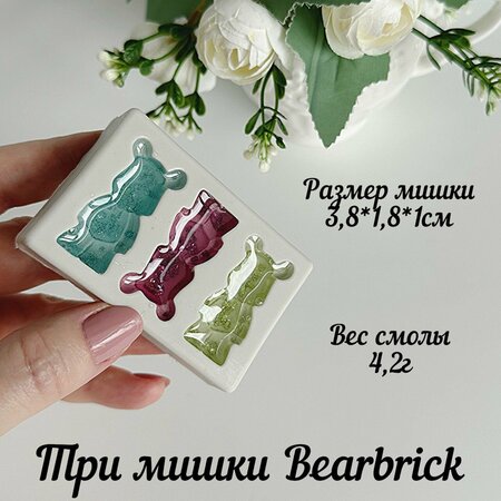 Молд для заливки эпоксидной смолы, многоразовая силиконовая форма для создания брелоков и поделок в форме трех мишек bearbrick. Размер молда: 75х48х15 мм Размер мишки: 38х18х10 Вес смолы на 1 мишку - 4,2г. Можно использовать для эпоксидной смолы, гипса или мыла. Как украшение на кружку или брелок. В формочки вы можете поместить небольшие предметы, такие как сухоцветы, ракушки, мелкие камни, блестки, стразы и другие предметы, чтобы сделать своими руками уникальные и значимые подарки для вашего партнера и друзей. Более подробно посмотрите в нашем видео или на Ютубе. Мишки достаточно небольшие, поэтому вполне подойдут в качестве декоративного элемента на кружку, свечу или кусок мыла. У вас получится прекрасный подарок для близких к 8 марта или другим праздникам своими руками! Силиконовый молд для изготовления украшений из эпоксидной смолы – специальный трафарет для рукоделия и творчества. Формы многоразовые, универсальные, износостойкие. Это отличный подарок для тех, кто любит хэнд мэйд. Можно подарить близкому человеку уже готовое изделие или только заготовку, с помощью которой он сделает украшение сам. Помните, что изделие из эпоксидной смолы – модное и красивое украшение для женщин, девушек, подростков и девочек. Брелок можно сделать под индивидуальный запрос клиента, для самого себя, для лучшей подруги, другу или любимому. Парная подвеска на цепочке – способ признаться в любви человеку. Форма для поделки: без запаха, нетоксичная, пыленепроницаемая, прочная. Она многоразовый и легко моется с мылом и водой после использования. В формочки вы можете поместить небольшие предметы, такие как сухоцветы, ракушки, мелкие камни, блестки, стразы и другие предметы, чтобы сделать своими руками уникальные и значимые подарки для вашего партнера и друзей.