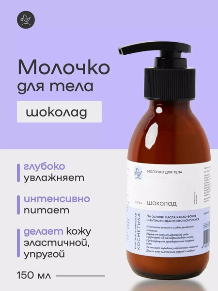 Молочко для тела "Шоколад" от Краснополянской косметики – это изысканный уход за кожей, который сочетает в себе нежность шоколада и питательные свойства натуральных компонентов. Это молочко идеально подходит для ежедневного использования в домашних условиях. Его основное действие направлено на улучшение упругости, восстановление и питание кожи, делая её более гладкой и увлажнённой. Состав молочка включает в себя гидролат лаванды, масло оливковое, какао тертое, полиглицериловый эфир масла ши, масло какао, растительный эмульгатор, антиоксидантный комплекс, ксантановую камедь, склероцию камедь, дегидроуксусную кислоту и бензиловый спирт, что обеспечивает глубокое питание и увлажнение кожи. Лимонная кислота добавляет в формулу естественный баланс pH, делая молочко подходящим для всех типов кожи, включая нормальную и сухую. Применение молочка "Шоколад" от Краснополянской косметики поможет вашей коже восстановить естественную упругость и свежесть, подарив ей нежный аромат шоколада и приятное ощущение увлажнённости.