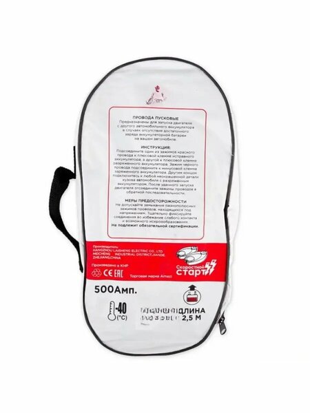 Представляем надежные провода для прикуривания аккумулятора с силой тока до 500А. Длина 2,5 метра обеспечивает удобство использования в различных условиях. Изготовлены из прочного кабеля с диаметром 10 мм и 213 жил, что гарантирует стабильный контакт и безопасность при эксплуатации. Подходят для работы с аккумуляторами на 12В и 24В, что делает их универсальным решением для авто и других транспортных средств. Эти провода отлично справляются с запуском автомобиля в холодную погоду, выдерживая температуры до минус 40 градусов Цельсия. Компактная сумка обеспечивает удобство хранения и транспортировки, предотвращая повреждение кабелей и упрощая их переноску. Изделие выполнено из высококачественных материалов, что обеспечивает долговечность и надежность в использовании. Простая и быстрая установка позволяет использовать провода самостоятельно, без необходимости обращения к специалистам. Обеспечьте безопасность и комфорт при эксплуатации автомобиля с нашими проводами для прикуривания. Надежное соединение и высокое качество материалов делают эти провода незаменимыми в автопаркe любого уровня.
