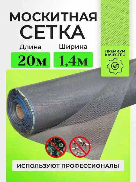 Москитная сетка в рулоне 1,4м х 20м мелкоячеистая, серая, для окон, дверей и вентиляции